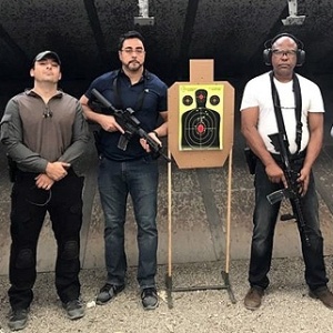 | O juiz Marcelo Bretas (ao centro, de camisa azul) em foto que postou em rede social treinando tiro |